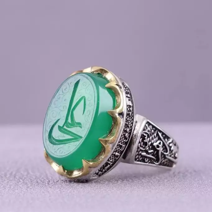 انگشتر مردانه عقیق سبز نقره امضا دار