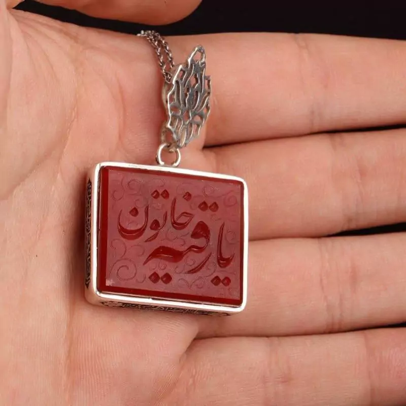 نگین عقیق سرخ اصل و قاب ان نقره 925 عیار می باشد.