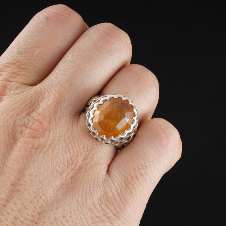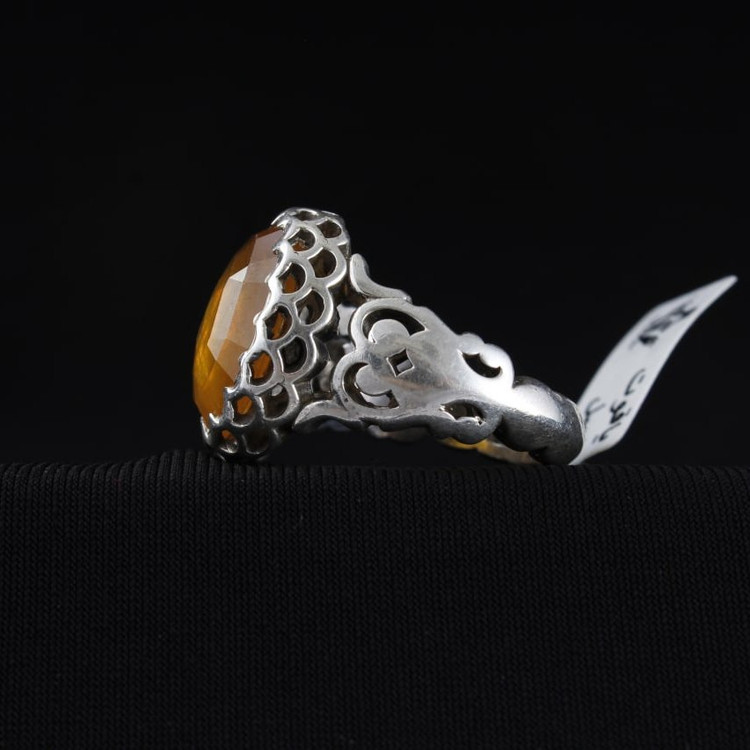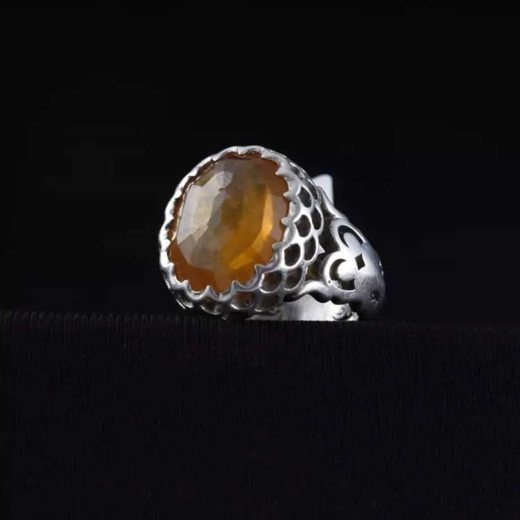 انگشتر نقره مردانه یاقوت زرد تراش زیبای اصل ( انگشتر یاقوت )