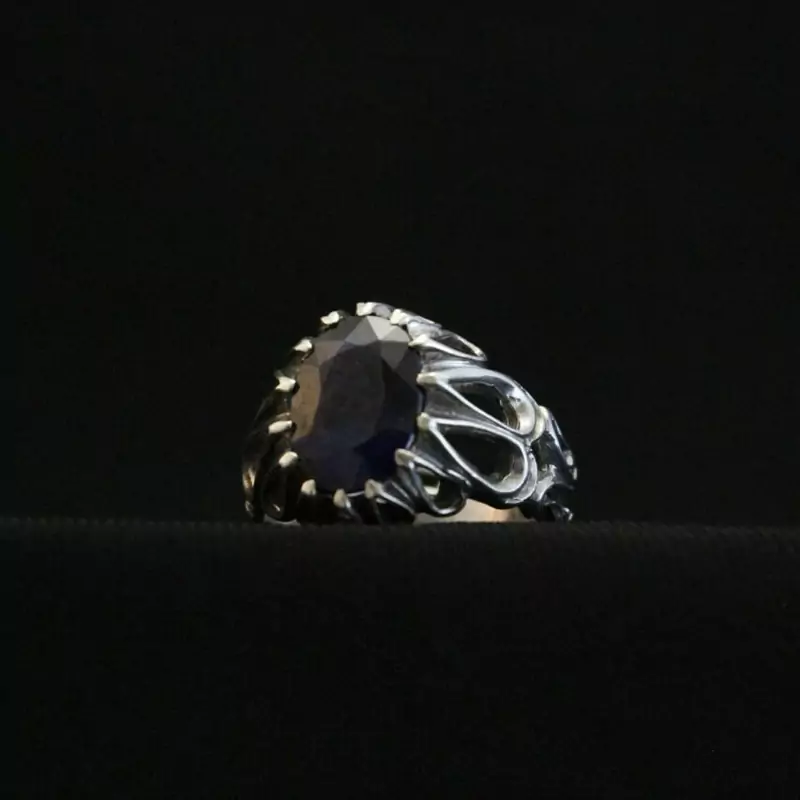 انگشتر یاقوت کبود تراش زیبای اصل ( انگشتر مردانه )