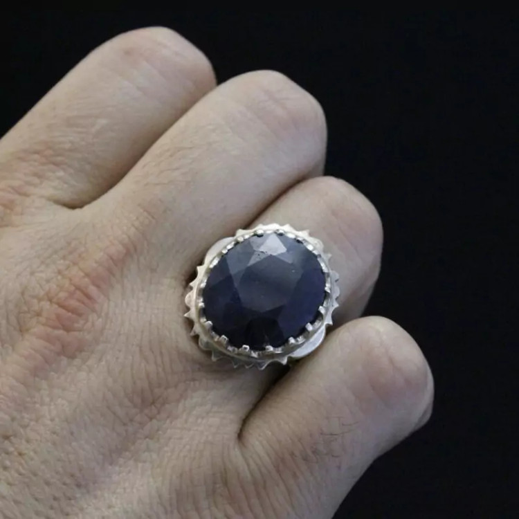 انگشتر نقره مردانه یاقوت کبود دستساز اصل ( انگشتر یاقوت )