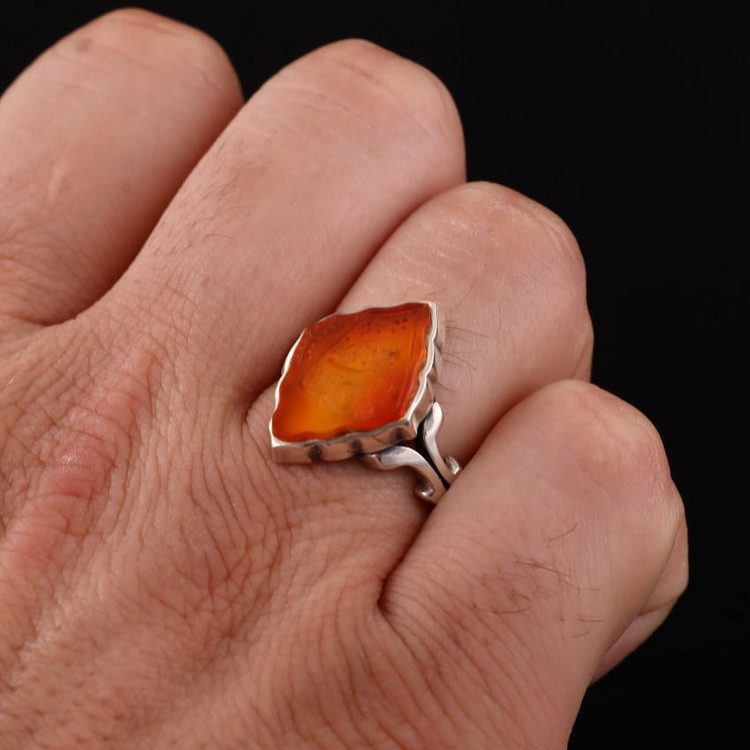 انگشتر مردانه عقیق یمنی شمسه نقش یاعباس اصل ( انگشتر نقره مردانه )