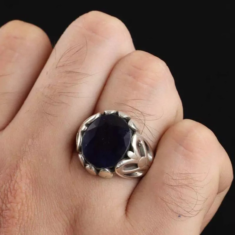 انگشتر نقره مردانه یاقوت کبود آفریقایی اصل