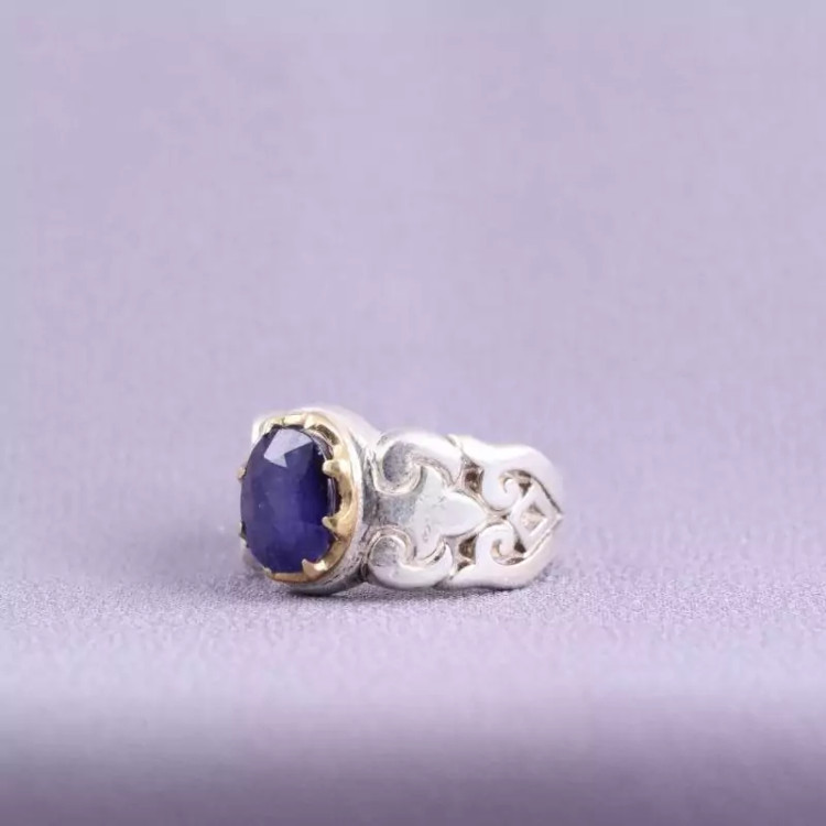 نگین انگشتر یاقوت کبود طبیعی اصل و رکاب آن نقره ۹۲۵ عیار می باشد.