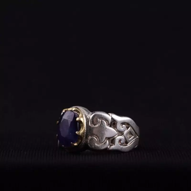 نگین انگشتر یاقوت کبود طبیعی اصل و رکاب آن نقره ۹۲۵ عیار می باشد.