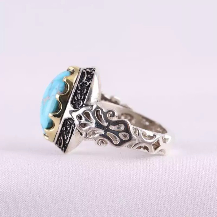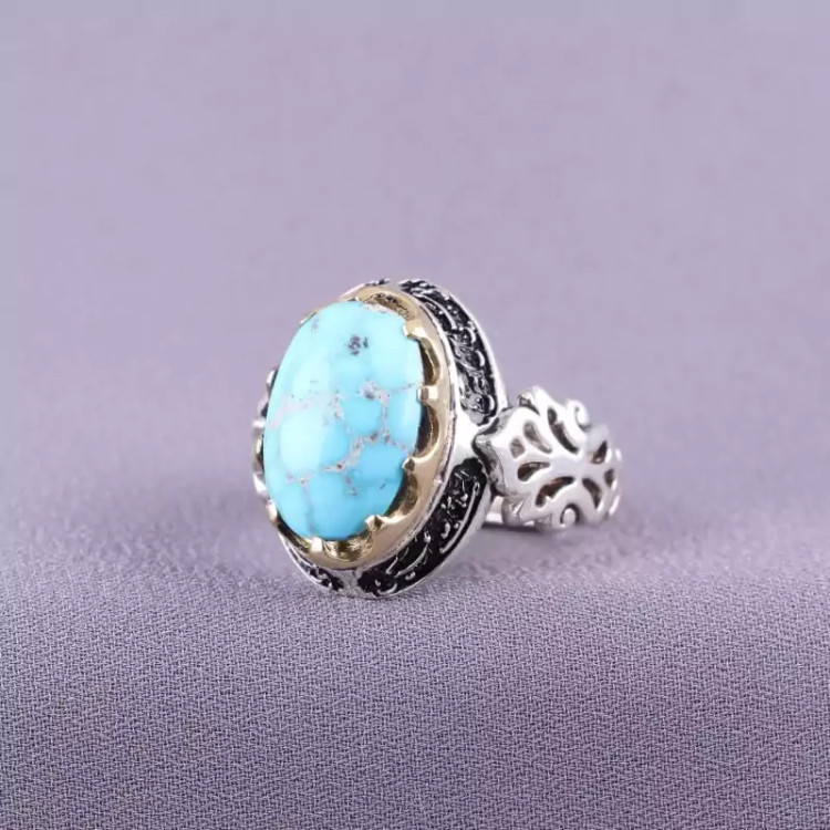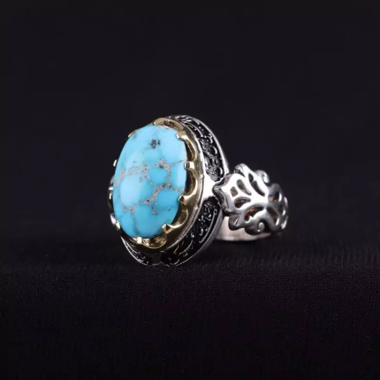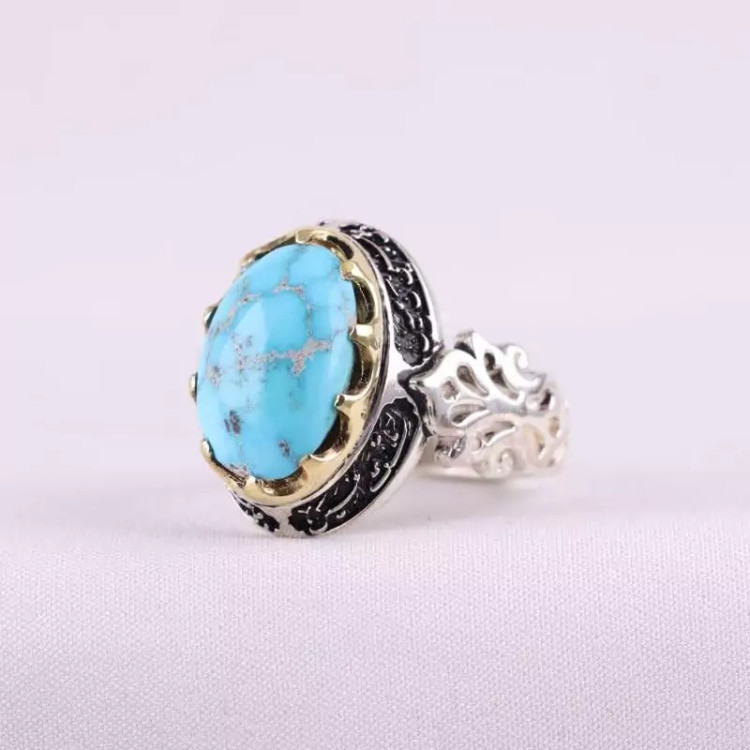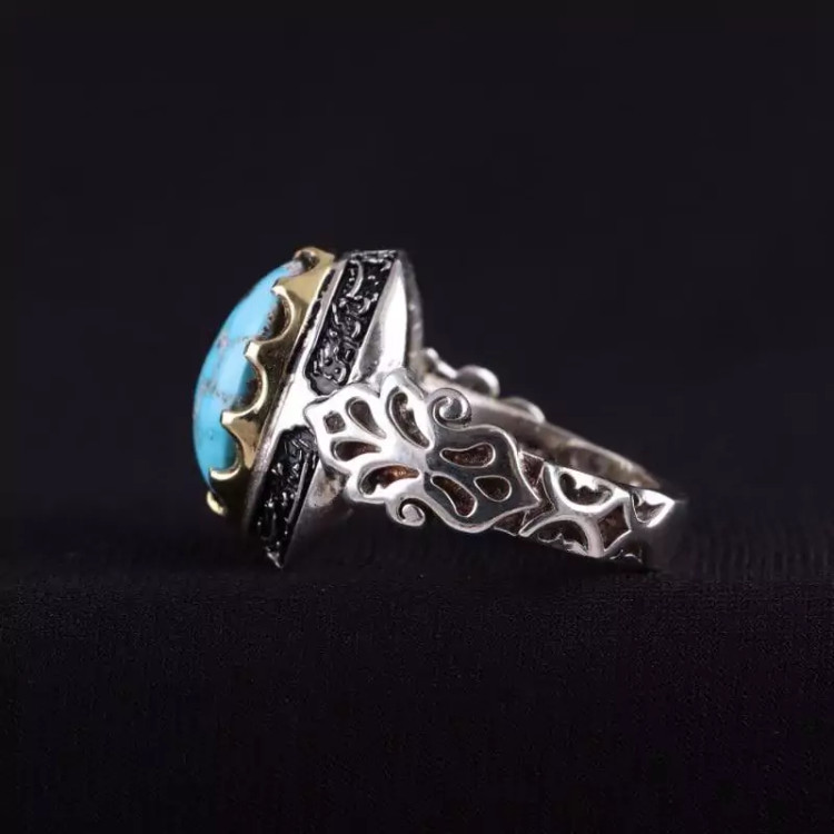 انگشتر مردانه فیروزه نیشابوری اصل دامله خوشرنگ قلمزنی