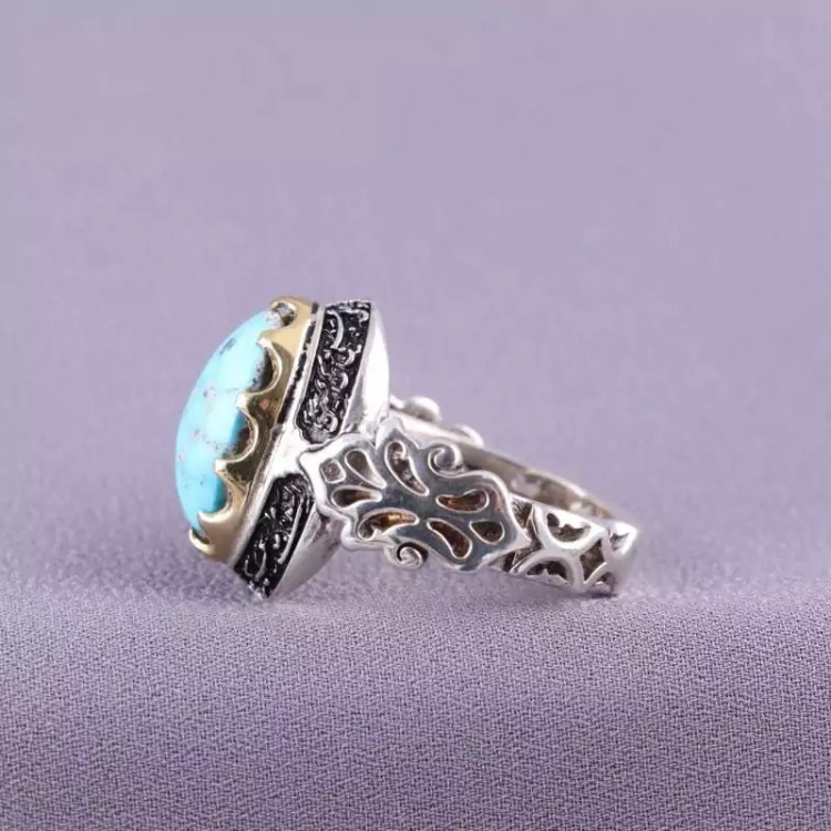 نگین فیروزه ی نیشابوری اصل دامله و خوشرنگ است.