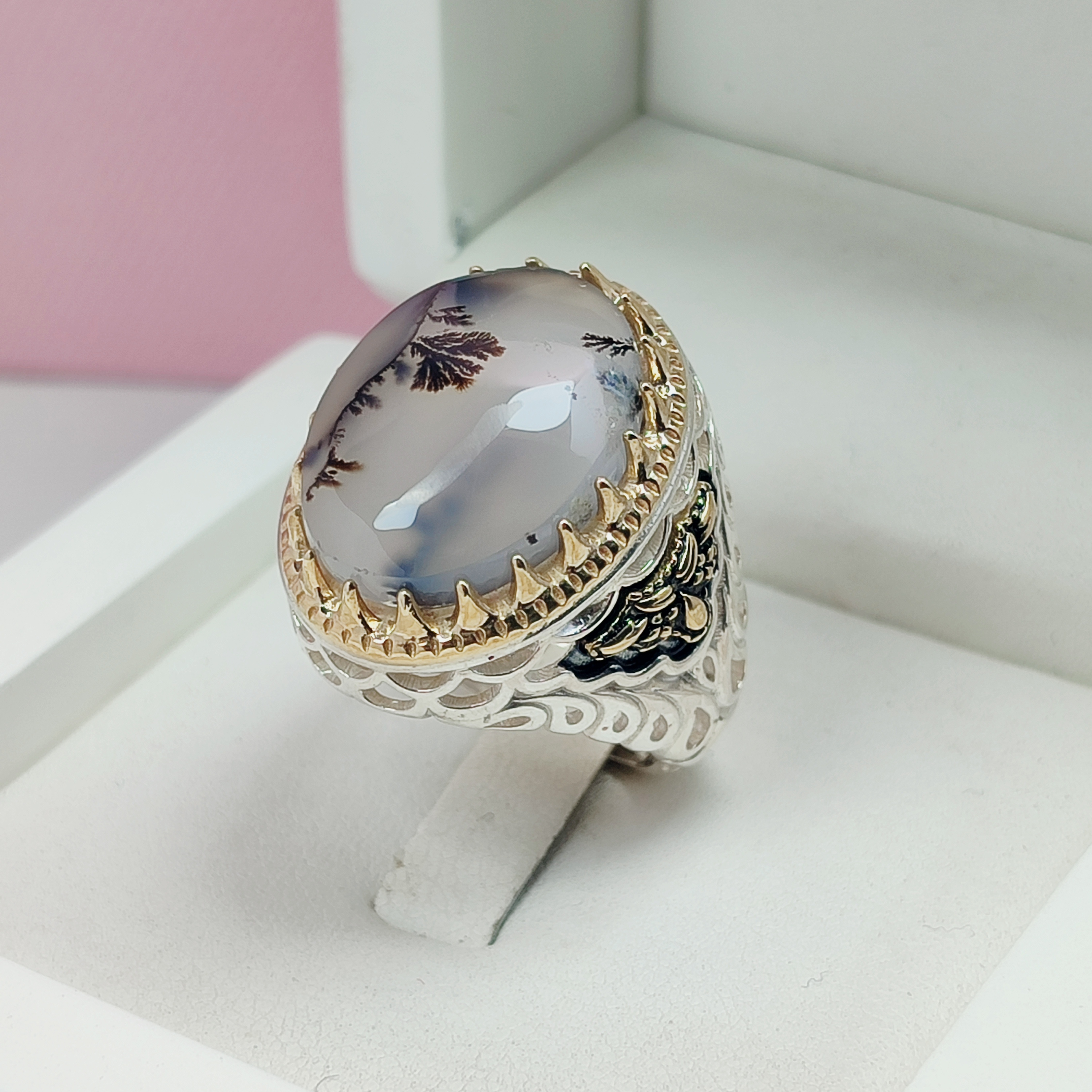 انگشتر عقیق شجر قائن طبیعی
