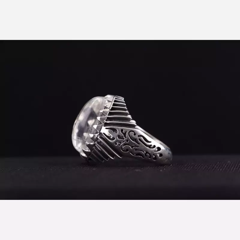 رکاب انگشتر نقره 925 عیار و سیاه قلم می باشد و نگین انگشتر در نجف اصل است.