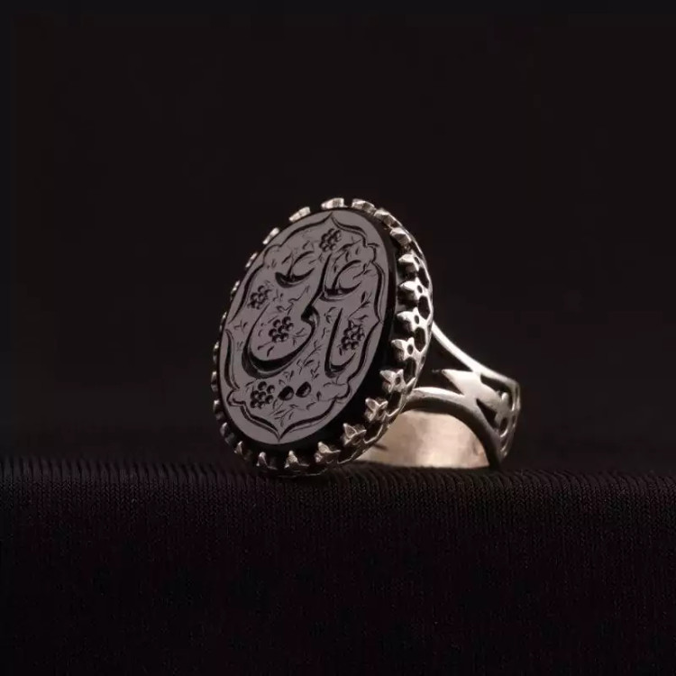 انگشتر نقره مردانه عقیق اصل خطی یا علی (ع)
