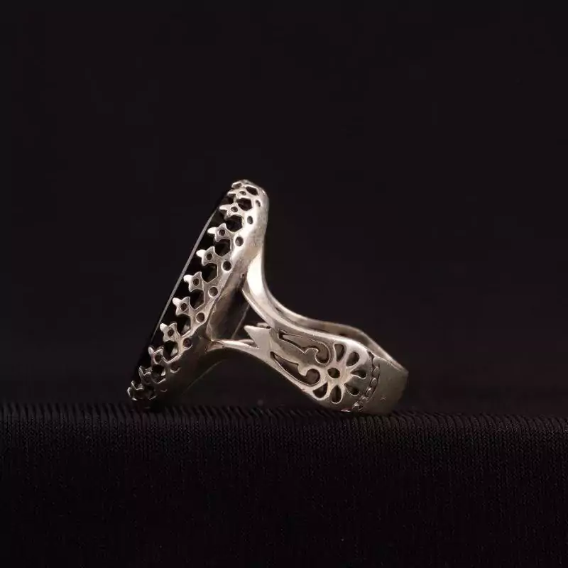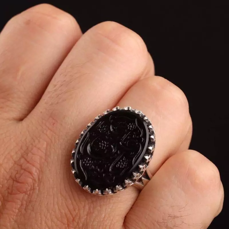 انگشتر نقره مردانه عقیق اصل خطی یا علی (ع)