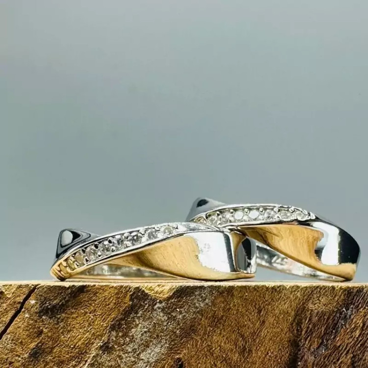 دو عدد حلقه نقره 925 عیار با روکش رادیوم و بسیار زیبا و طرح طلا سفید.