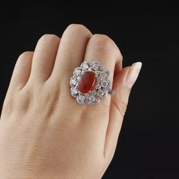 انگشتر نقره زنانه عقیق یمنی رگه طبیعی رکاب رادیومی اصل ( انگشتر زنانه )