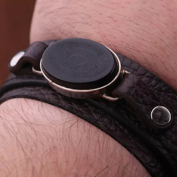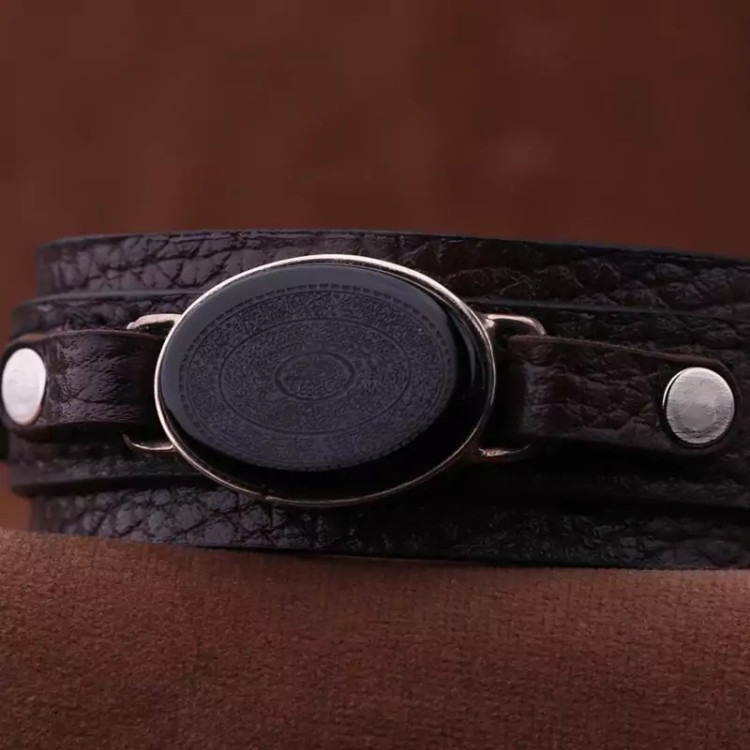دستبند چرم عقیق مشکی نقش 16 سوره مردانه