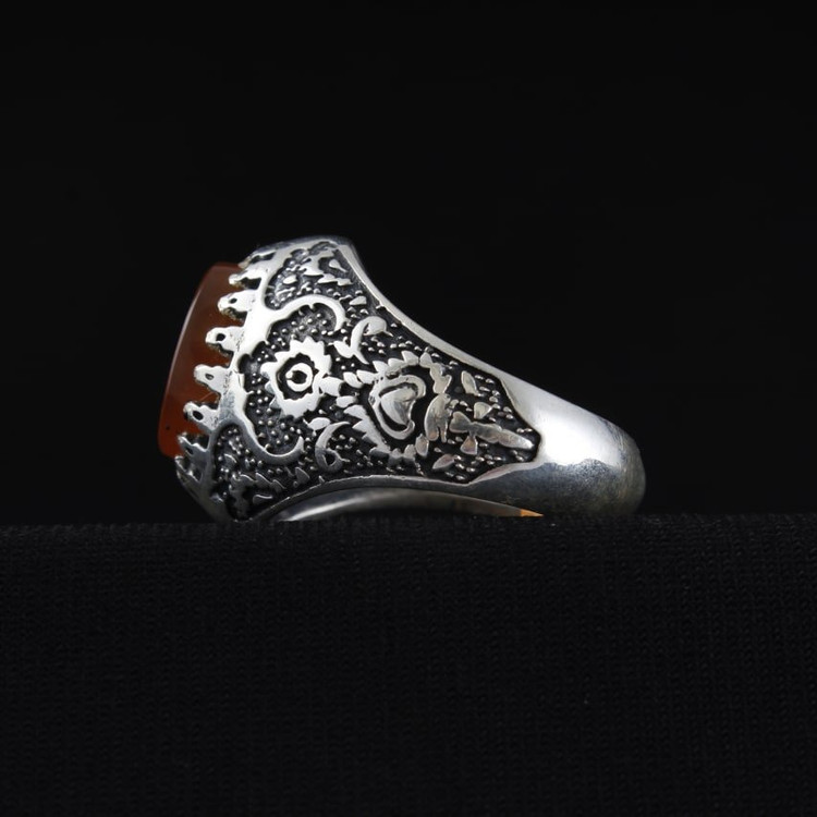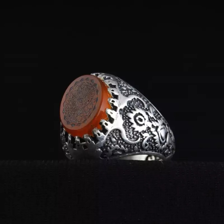 انگشتر نقره مردانه عقیق یمنی نقش سوره کوثر اصل ( انگشتر عقیق )