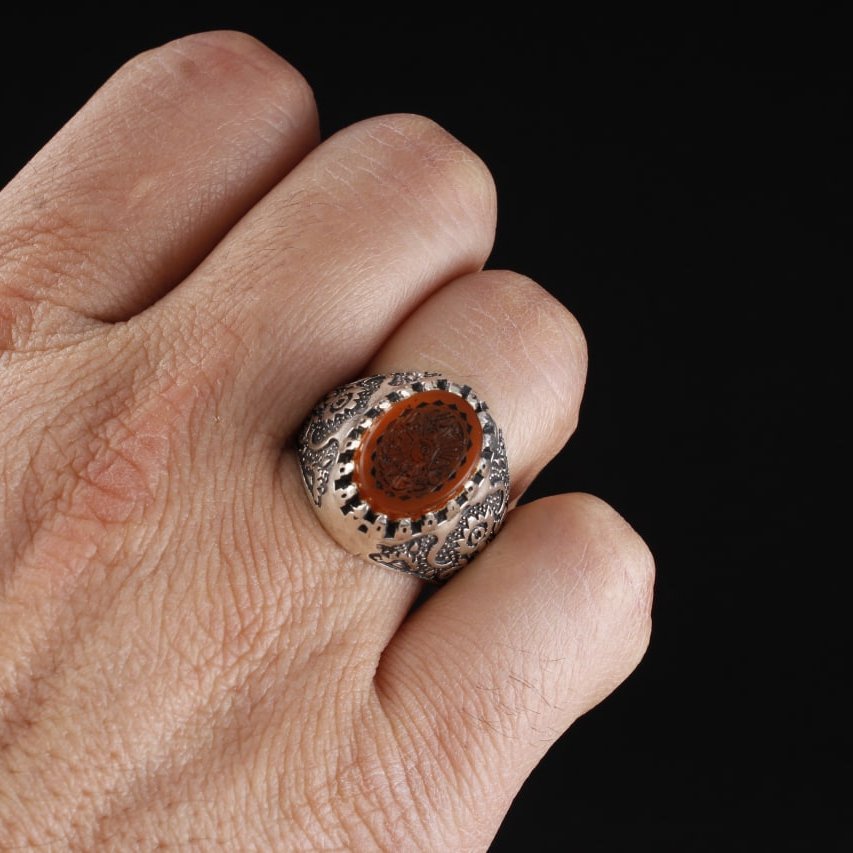 انگشتر نقره مردانه عقیق یمنی نقش سوره کوثر اصل ( انگشتر عقیق )