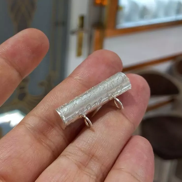 گردنبند نقره لوله ای حرز امام جواد پوست آهو اصل ( گردنبند لوله ای )