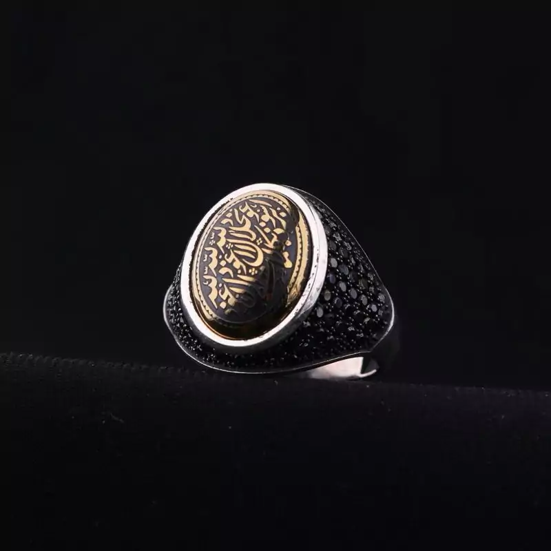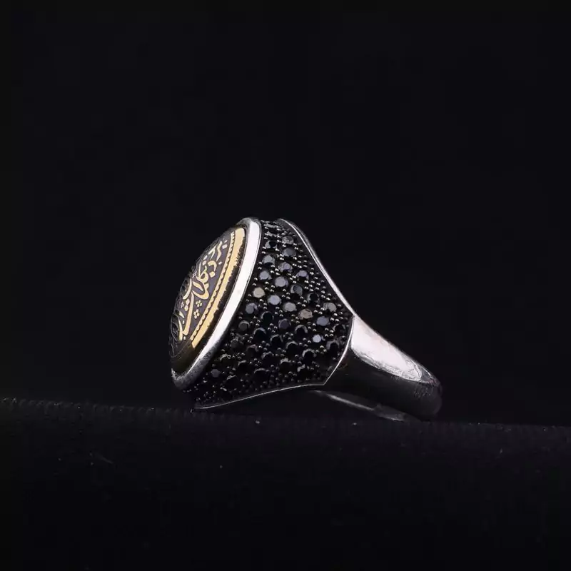 انگشتر حدید هفت جلاله روکش برنجی رکاب مارکازیتی اصل ( انگشتر مردانه )