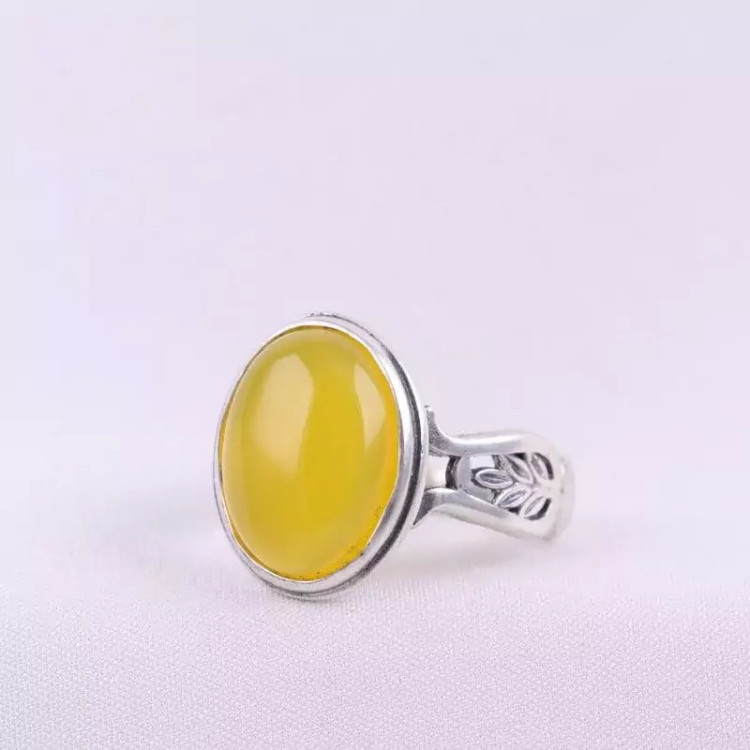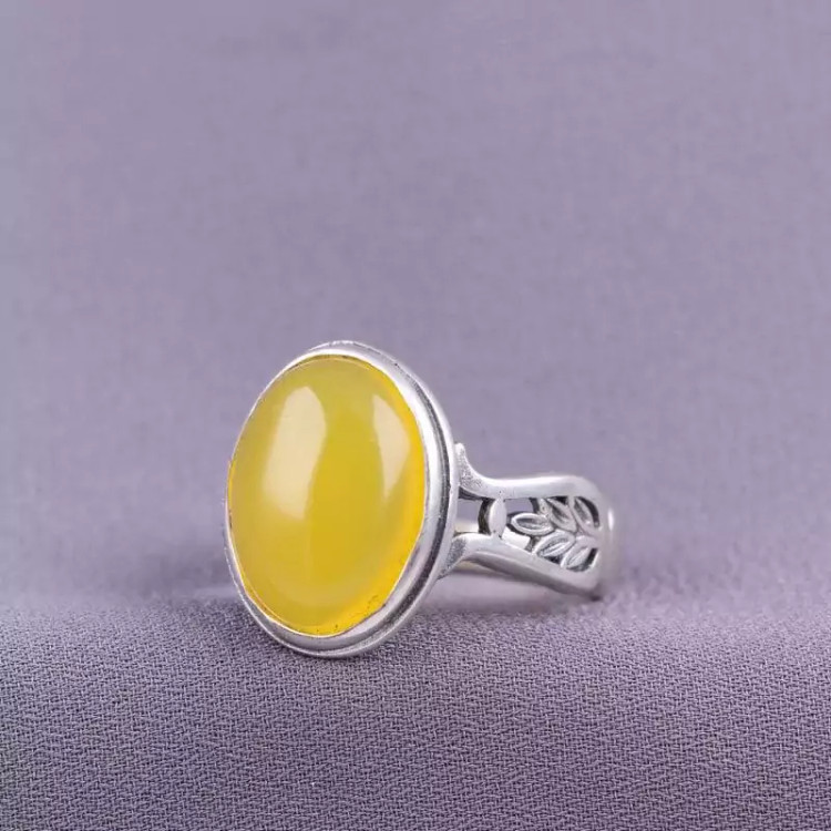 نگین این انگشتر زیبا عقیق زرد طبیعی اصل و مزین به حرز شرف الشمس می باشد.