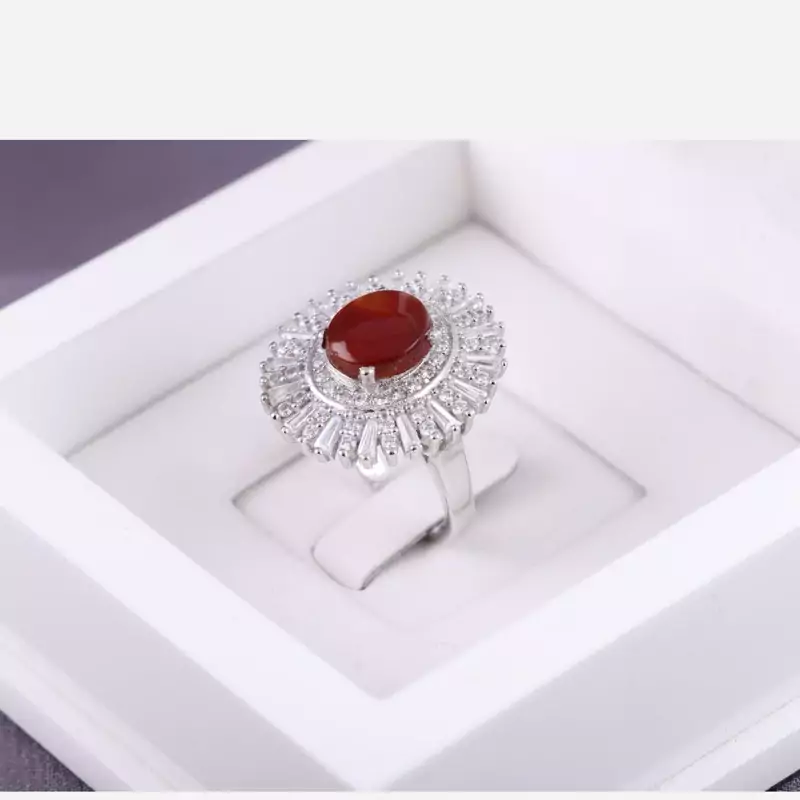 نگین این انگشتر زیبا و جواهری عقیق یمنی سرخ اصل است.