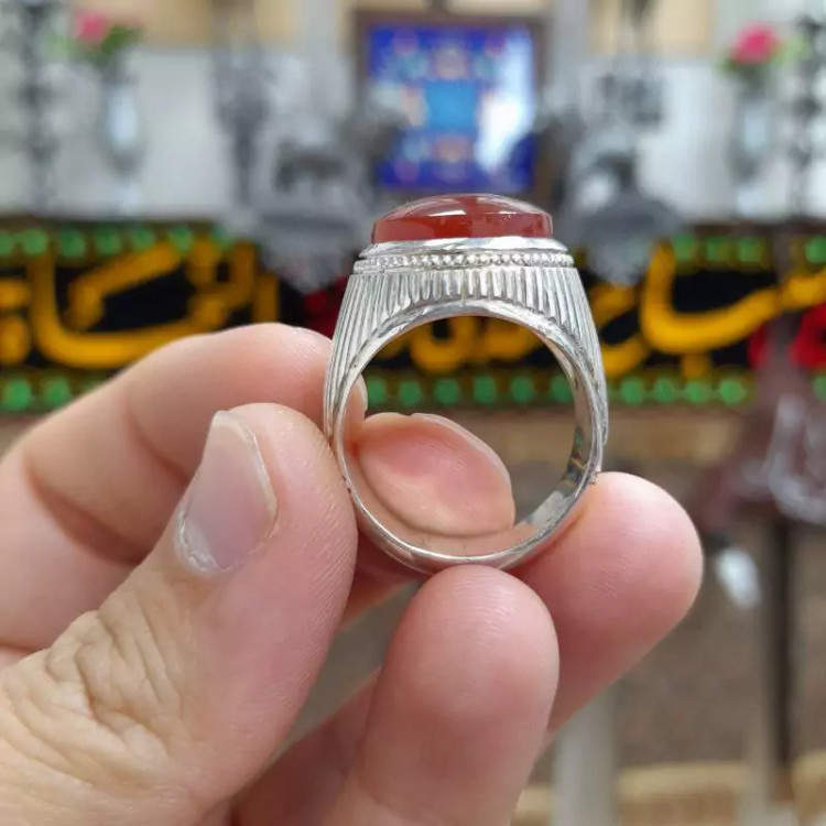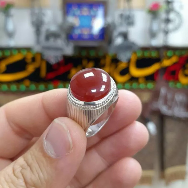 انگشتر عقیق سرخ یمنی اصل نقره مردانه دستساز قم ( انگشتر عقیق یمنی مردانه )