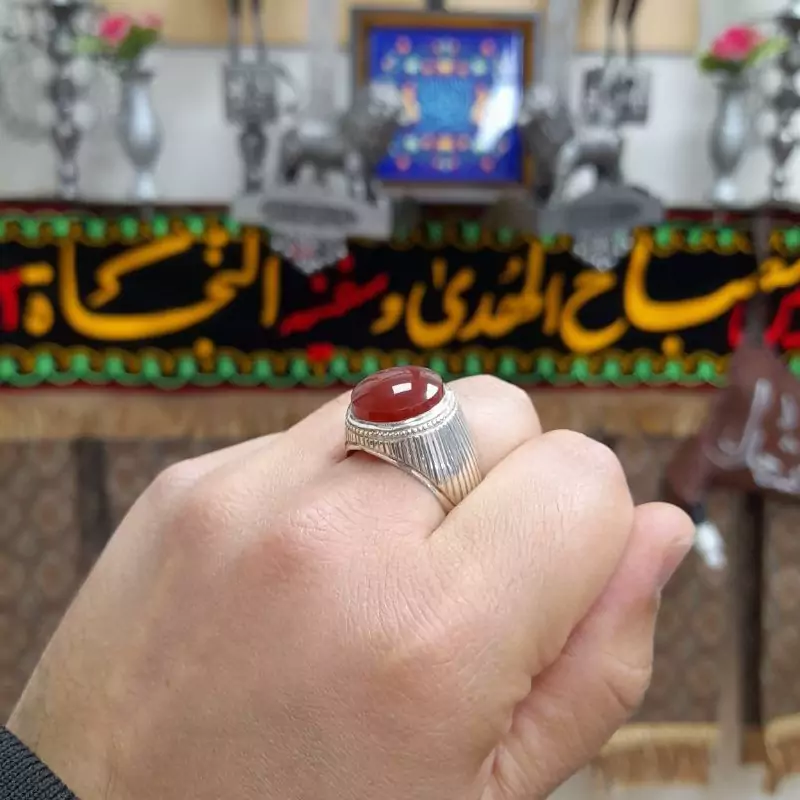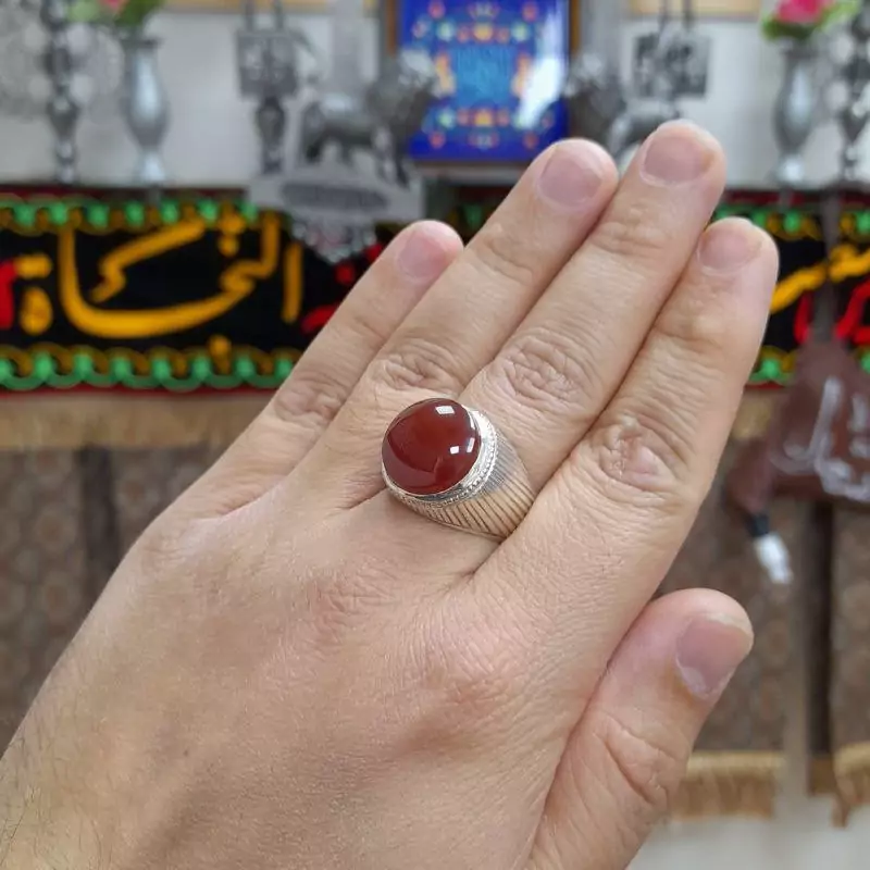 انگشتر عقیق سرخ یمنی اصل نقره مردانه دستساز قم ( انگشتر عقیق یمنی مردانه )