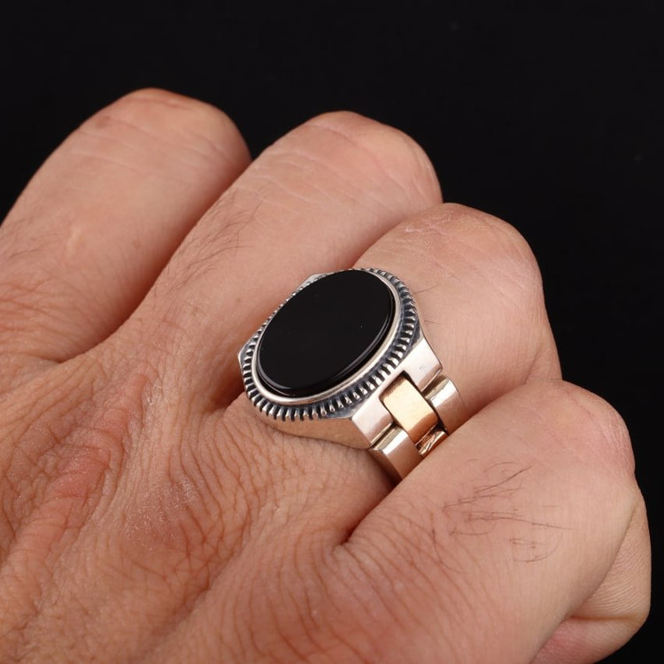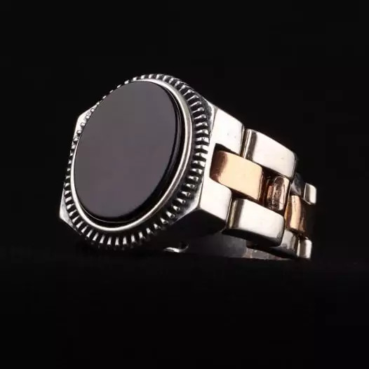 انگشتر مردانه رولکسی درجه یک عقیق مشکی اصل ( انگشتر رولکسی )