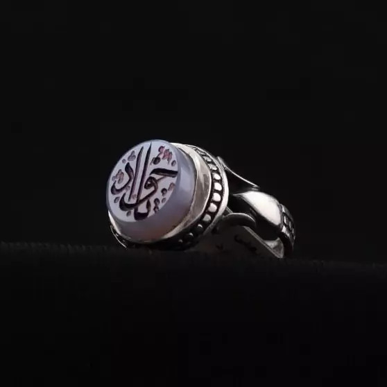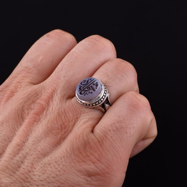 انگشتر مردانه عقیق کبود یمنی نقش یاجواد اصل ( انگشتر عقیق )
