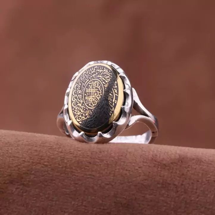 انگشتر حدید روکش برنجی منقش به آیت الکرسی مردانه اصل ( انگشتر مردانه )