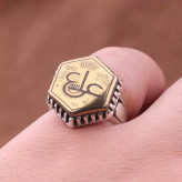 انگشتر حدید شیش ضلعی روکش برنجی نقش عین علی مردانه اصل ( انگشتر مردانه )