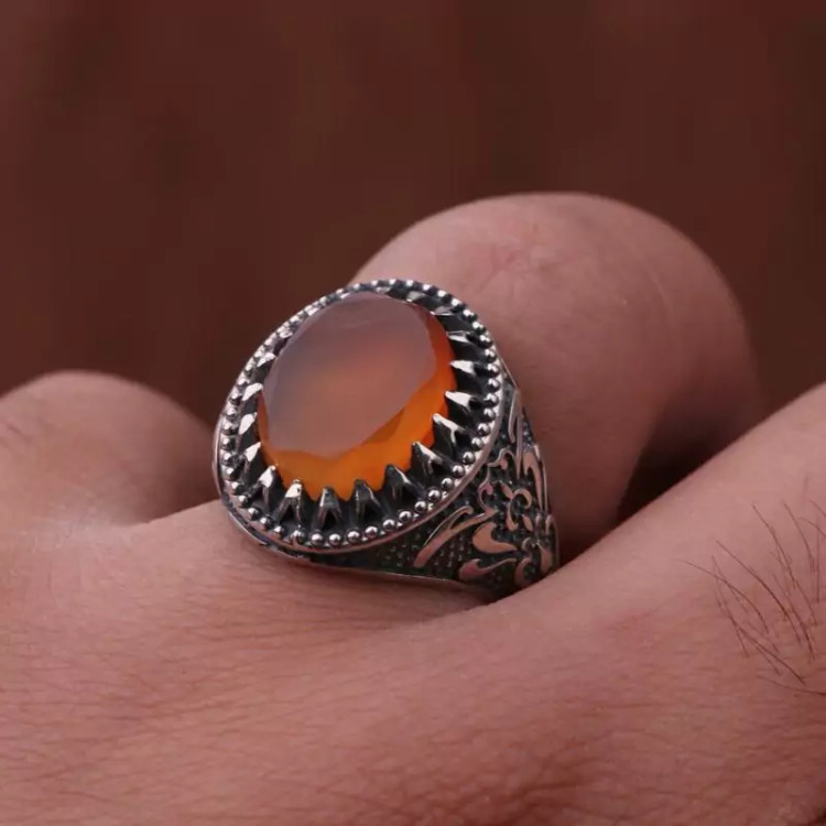 انگشتر عقیق یمنی تراشیده شده زیبای اصل ( انگشتر مردانه )