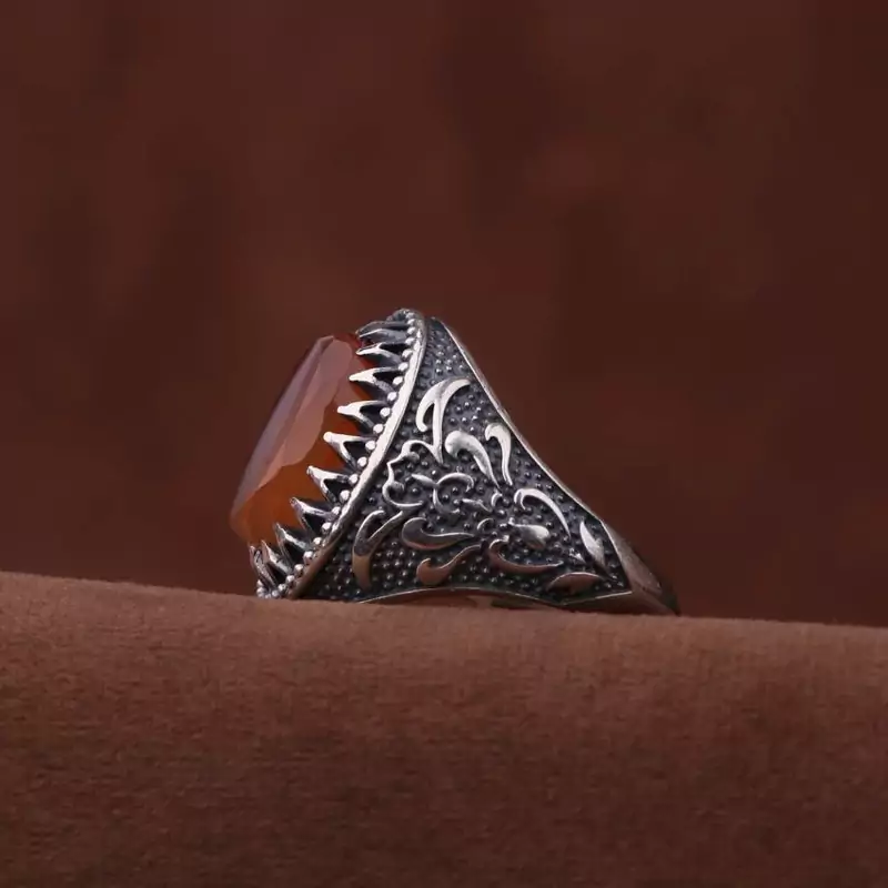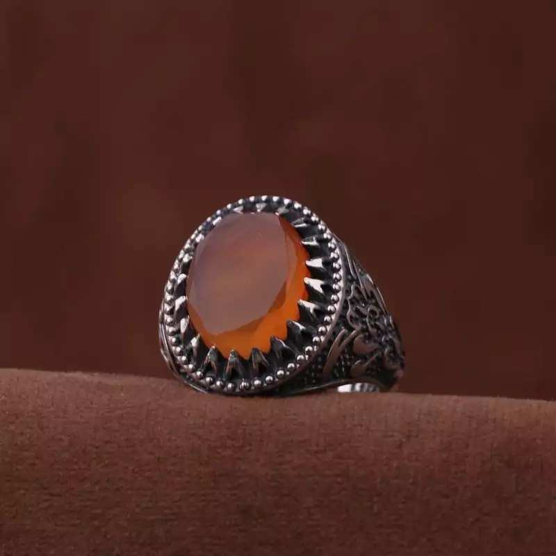 انگشتر عقیق یمنی تراشیده شده زیبای اصل ( انگشتر مردانه )