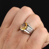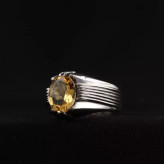 انگشتر نقره مردانه رکاب دستساز با نگین سیترین اصل طبیعی و روکش رادیوم