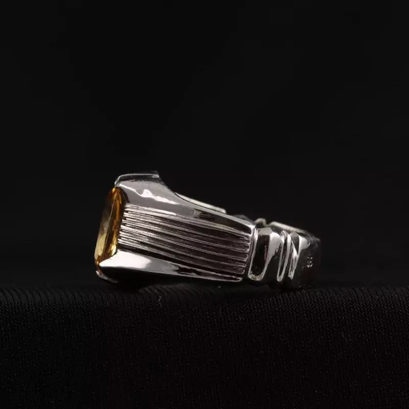 انگشتر نقره مردانه رکاب دستساز با نگین سیترین اصل طبیعی و روکش رادیوم