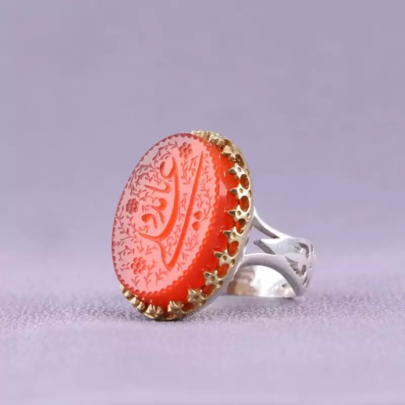 انگشتر مردانه عقیق سرخ یا علی رکاب سرنیزه