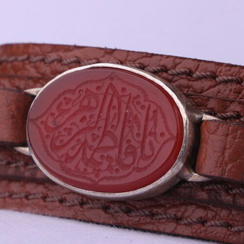 نگین دستبند عقیق اصل میباشد و با نقش یا فاطمه الزهرا متبرک شده.