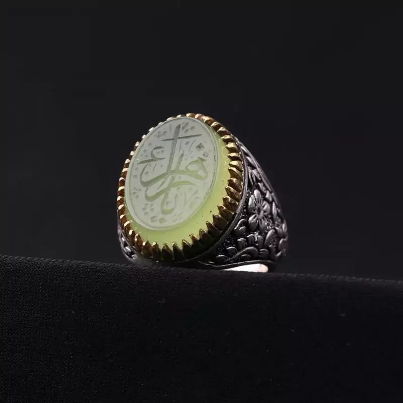 انگشتر عقیق سبز رکاب تاج برنجی نقش یازهرا اصل ( انگشتر مردانه )