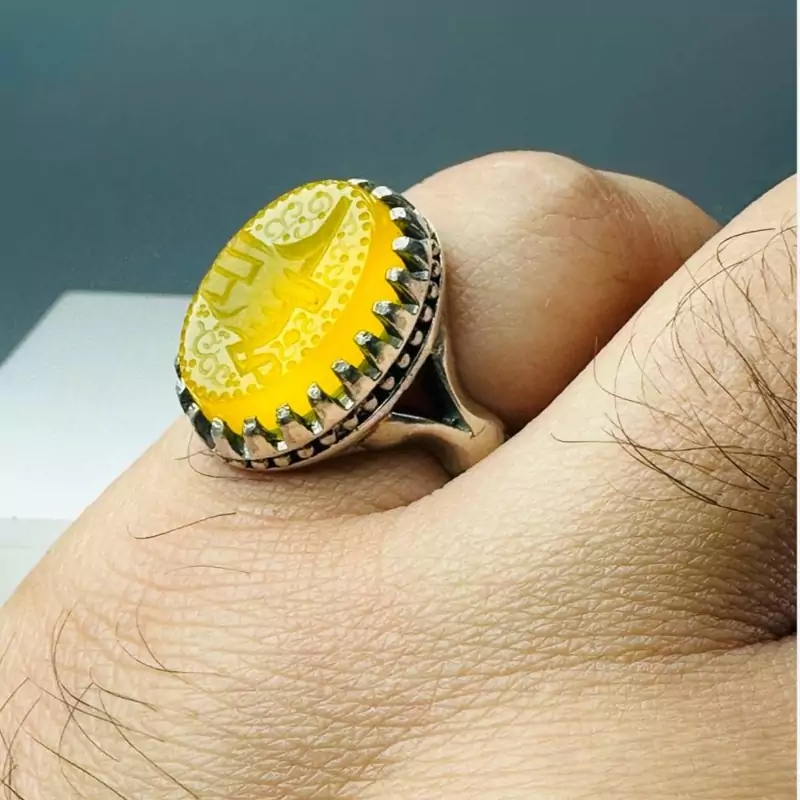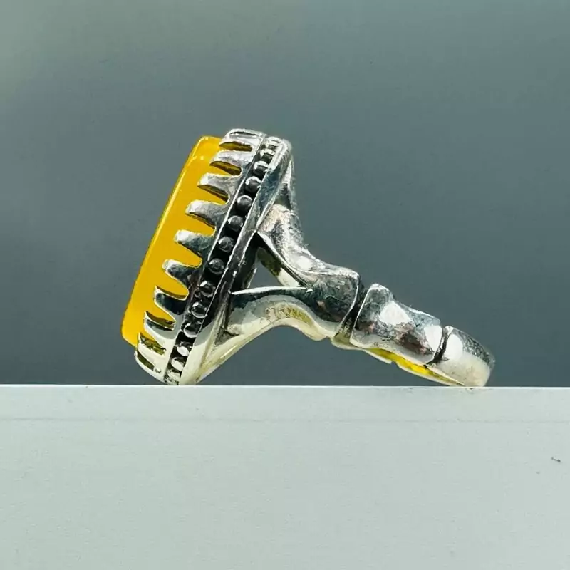 رکاب انگشتر نقره 925 عیار و نگین آن عقیق زرد اصل است.