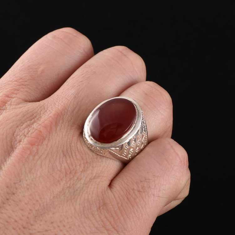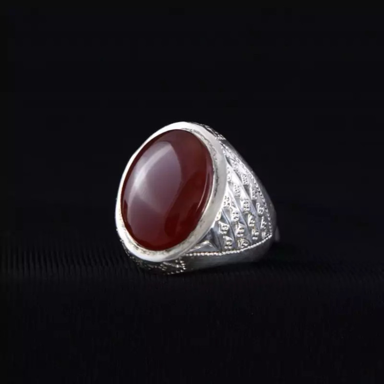 انگشتر نقره مردانه عقیق یمنی سرخ دستساز اصل ( انگشتر عقیق )