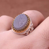 انگشتر عقیق کبود نقش یاحسین رکاب تاج برنجی مردانه اصل ( انگشتر مردانه )
