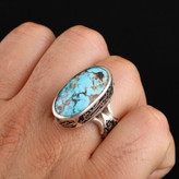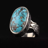 انگشتر فیروزه نیشابوری رکاب دور نقش معدنی اصل ( انگشتر نقره مردانه )