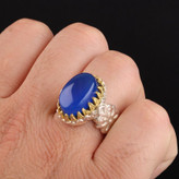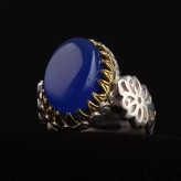 انگشتر عقیق آبی رکاب تاج برنجی مردانه اصل ( انگشتر نقره مردانه )