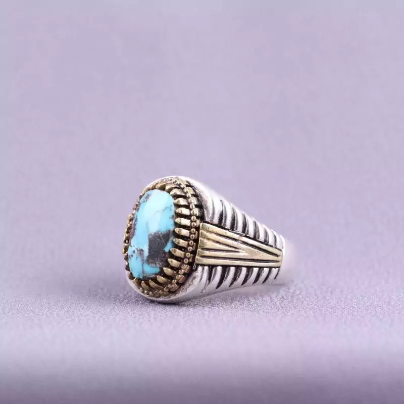 رکاب این انگشتر زیبا نقره ۹۲۵ عیار و نگین آن فیروزه اصل نیشابوری است.