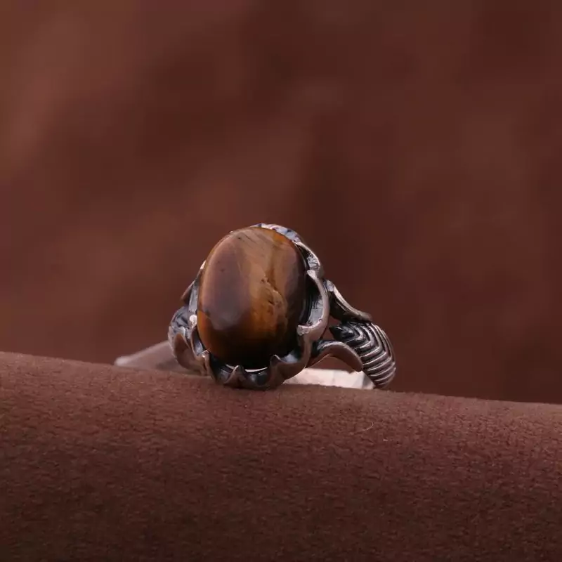 انگشتر تایگر معدنی رگه دار اصل ( انگشتر مردانه )