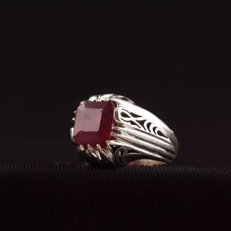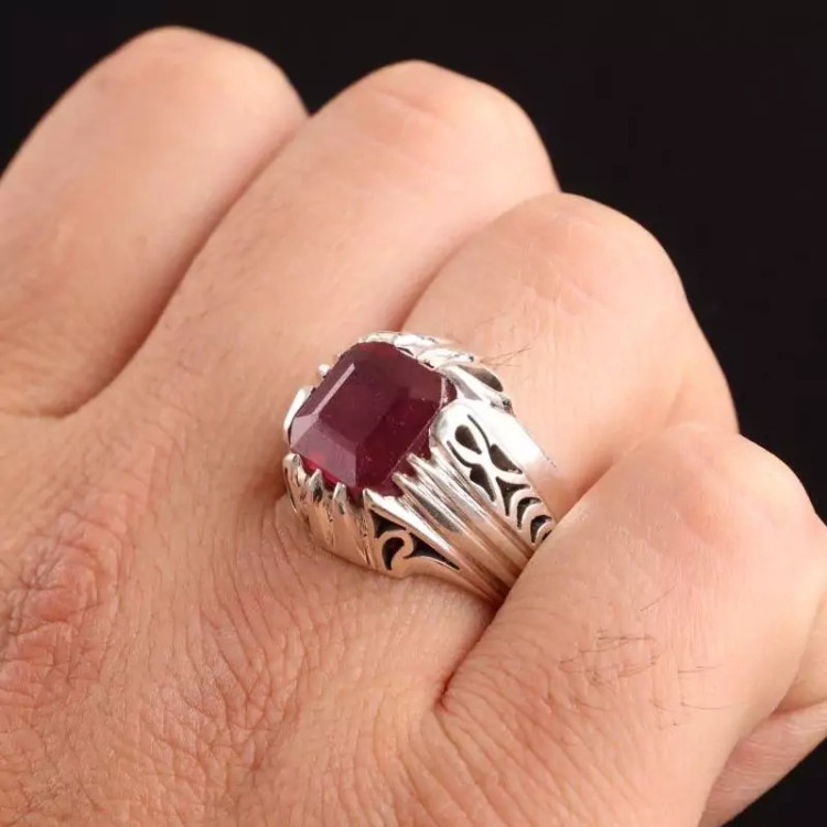 انگشتر نقره مردانه دستساز یاقوت سرخ آفریقایی طبیعی اصل ( انگشتر یاقوت مردانه )