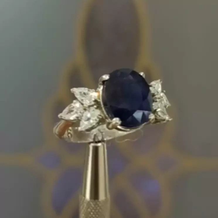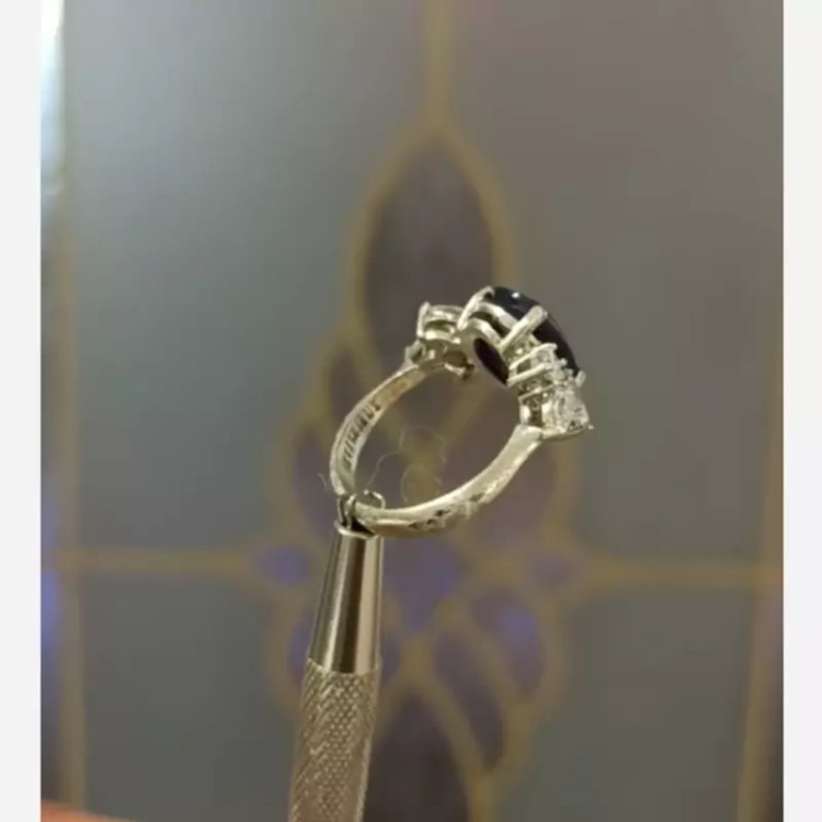 نگین آن یاقوت کبود جواهری است و اطراف آن نگین های میکرو و باگت کار شده است.