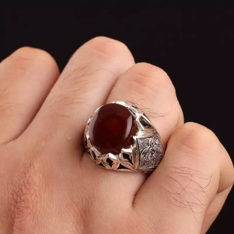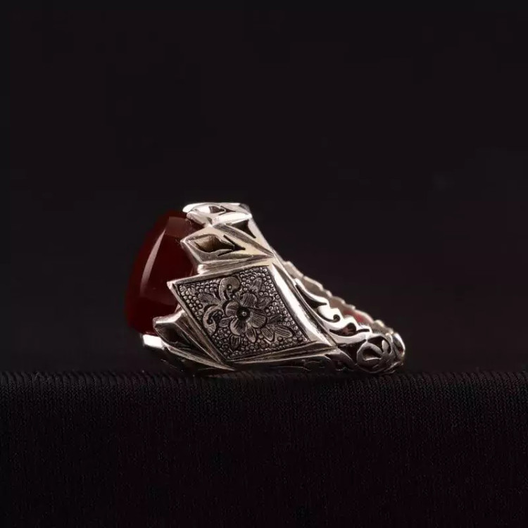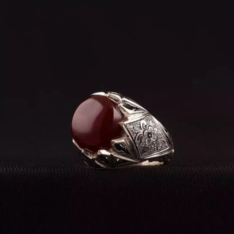 نگین این انگشتر زیبا و فاخر عقیق یمنی سرخ آبدار می باشد.