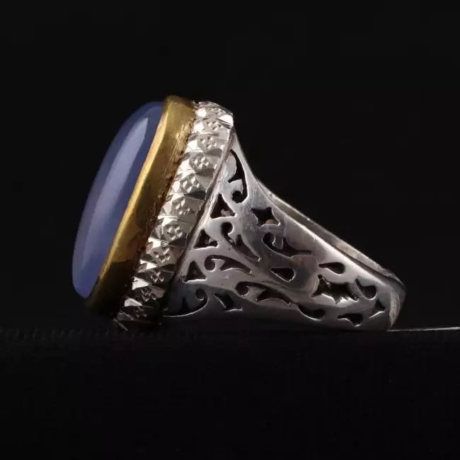 انگشتر نقره مردانه عقیق کبود یمنی دستساز رکاب دور برنجی اصل ( انگشتر مردانه )