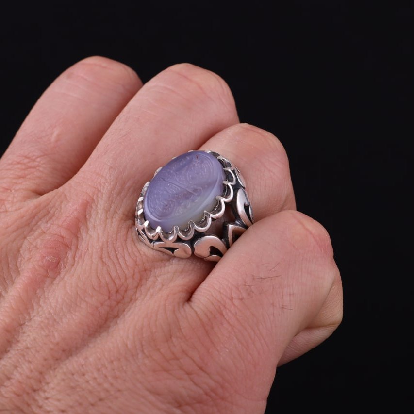 انگشتر نقره مردانه عقیق کبود معدنی نقش یاحسین اصل ( انگشتر عقیق )