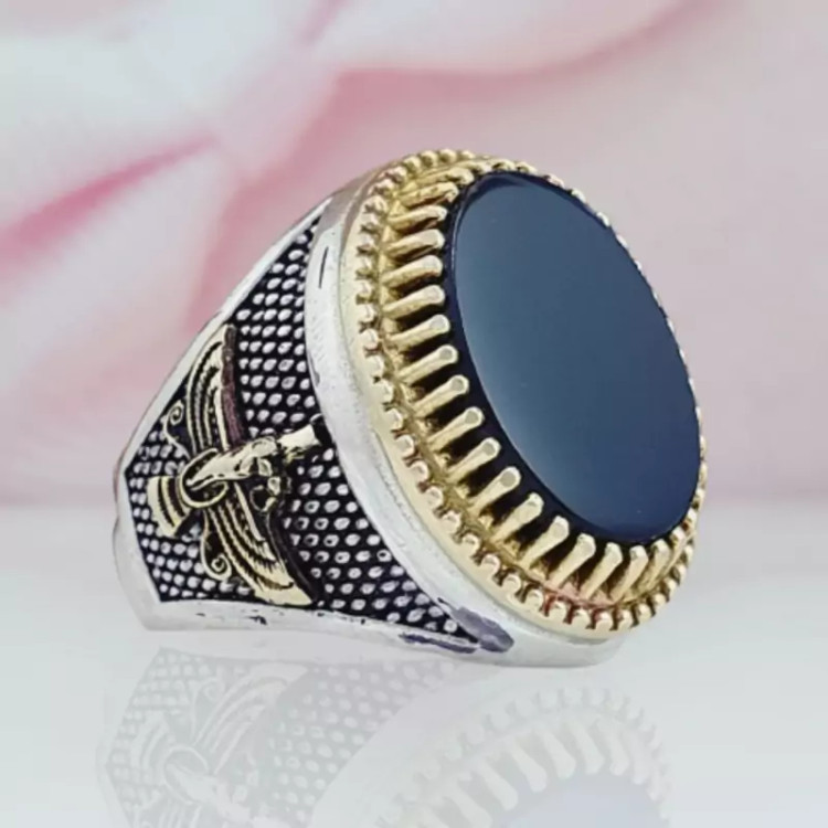 انگشتر مردانه عقیق سیاه با رکاب فروهر